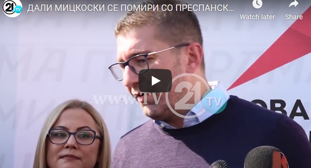 МИЦКОСКИ СЕ ПОМИРИ СО ПРЕСПАНСКИОТ ДОГОВОР? ДОРИС ПАК И ТИМОНИЕ: ДПМНЕ ЌЕ ГО ПОЧИТУВА ДОГОВОРОТ 1Nov 20191 Comment СподелиTweetLike Loading...