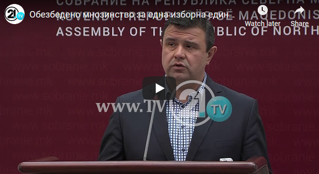 Обезбедено мнозинство за една изборна единица – помалите партии го поднесоа предлогот до Собранието 8Nov 2019Add a comment СподелиTweetLike Loading...