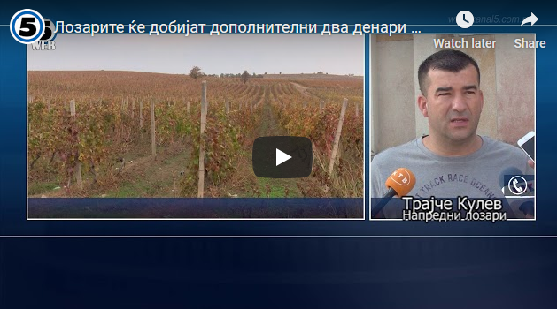 Лозарите ќе добијат дополнителни два денари за килограм продадено грозје 13Nov 2019Add a comment СподелиTweetLike Loading...