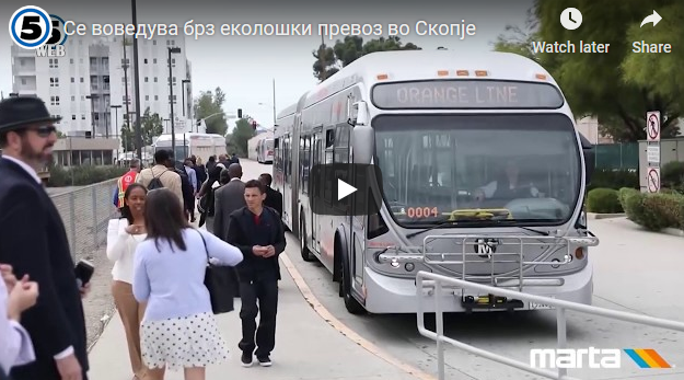 Се воведува брз еколошки превоз во Скопје 4Dec 20194 Dec 2019Add a comment Во Скопје ќе се воведува автобуско метро или брз автобуски превоз. Владата на вчерашната седница ја усвоила информацијата за воведување на БРТ на територијата на град Скопје. СподелиTweetLike Loading...