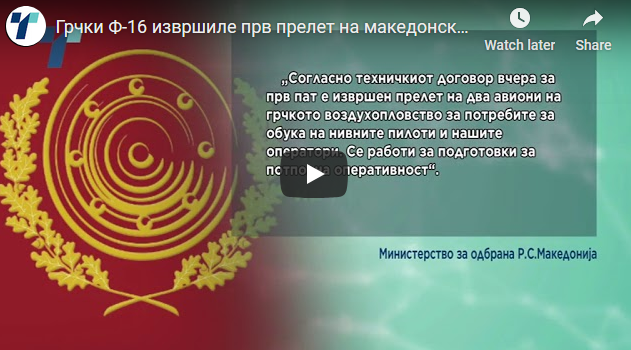 Грчки Ф-16 извршиле прв прелет на македонскиот воздушен простор 24Dec 2019Add a comment СподелиTweetLike Loading...