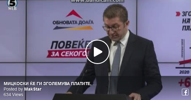 МИЦКОСКИ ЌЕ ГИ ЗГОЛЕМУВА ПЛАТИТЕ, ТРАЈКО СЛАВЕВСКИ (член на Извшрниот комитет на ВМРО-ДПМНЕ) ПРОТИВ ЗГОЛЕМУВАЊЕ… 10Feb 2020Add a comment МИЦКОСКИ ЌЕ ГИ ЗГОЛЕМУВА ПЛАТИТЕ, ТРАЈКО СЛАВЕВСКИ (член на Извшрниот комитет на ВМРО-ДПМНЕ) ПРОТИВ ЗГОЛЕМУВАЊЕ… Дали Мицкоски ќе ја дестабилизира Македонија… СподелиTweetLike Loading...