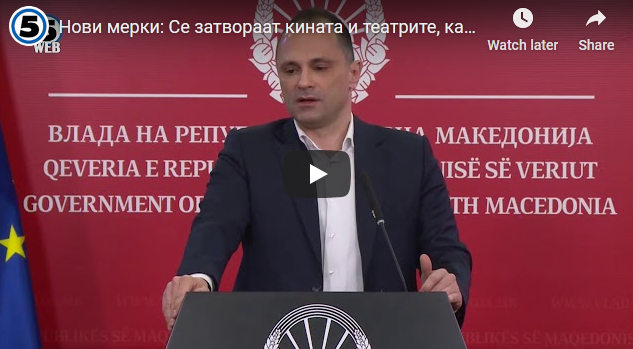Нови мерки: Се затвораат кината и театрите, кафе баровите и кафеаните ќе работат до 18 часот 12Mar 2020Add a comment СподелиTweetLike Loading...