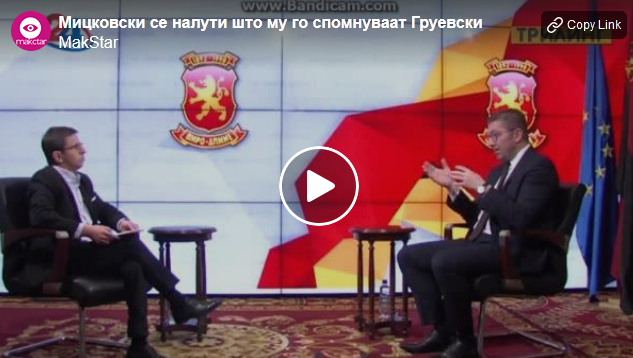 Мицкоски се налути што постојано му го спмонуваат Груевски 27Mar 202027 Mar 2020Add a comment Мицковски побара од Горазд Чомовски да не го прашува за Груевски, туку да направи интервју лично со него, тој му врати „не правам интервју со криминалец“ СподелиTweetLike Loading...