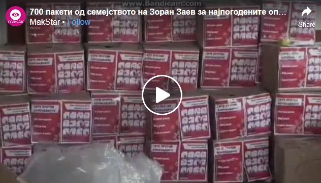 Во соработка со општинските кризни штабови на најпогодените општини од корона вирусот, Куманово и Дебар, семејството на претседателот на СДСМ Зоран Заев со помош на волонтерите од струмичкиот општински кризен штаб и хуманитарни невладини друштва, во текот на денешниот ден ќе спремаат и утре ќе испорачаат вкупно 700 пакети со прехранбени продукти од кои 500 за Куманово и 200 за Дебар.