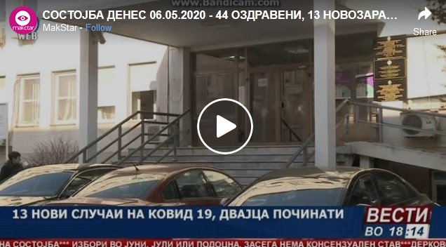 СОСТОЈБА ДЕНЕС 06.05.2020 – 44 ОЗДРАВЕНИ, 13 НОВОЗАРАЗЕНИ ОД 292 ТЕСТИРАЊА… 6May 2020Add a comment СподелиTweetLike Loading...