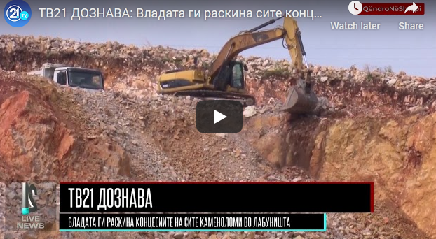 ТВ21 ДОЗНАВА: Владата ги раскина сите концесии на каменоломите во Лабуништа 14May 2020Add a comment СподелиTweetLike Loading...