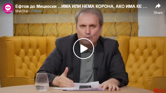 Ефтов до Мицкоски …ИМА ИЛИ НЕМА КОРОНА, АКО ИМА НЕМА ДА ОДИТЕ ВО ТЕРЕТАНА И ПО ЦРКВИ, АКО НЕМА ЌЕ ОДИТЕ НА ИЗБОРИ… 28May 2020Add a comment Ефтов до Мицкоски …ИМА ИЛИ НЕМА КОРОНА, АКО ИМА НЕМА ДА ОДИТЕ ВО ТЕРЕТАНА И ПО ЦРКВИ, АКО НЕМА ЌЕ ОДИТЕ НА ИЗБОРИ… СподелиTweetLike Loading...