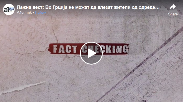 Милошоски, “Сител”, “Вечер”… споделуваа лажна вест за забрана на влез во Грција за жителите од Чаир и Тетово… 3Jun 2020Add a comment Порталот „Вечер.мк“ објави лажна вест дека Грција ќе забранува влез за жители на општини со најголем број на заразени лица од коронавирусот СподелиTweetLike Loading...