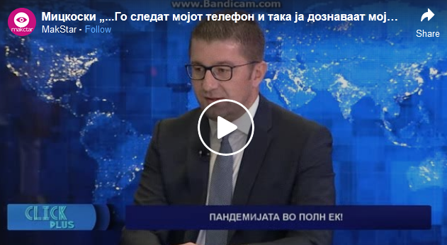 Мицкоски „…Го следат мојот телефон и така ја дознаваат мојата локација, Чулев веќе го кажа тоа…“ 5Jun 2020Add a comment СподелиTweetLike Loading...