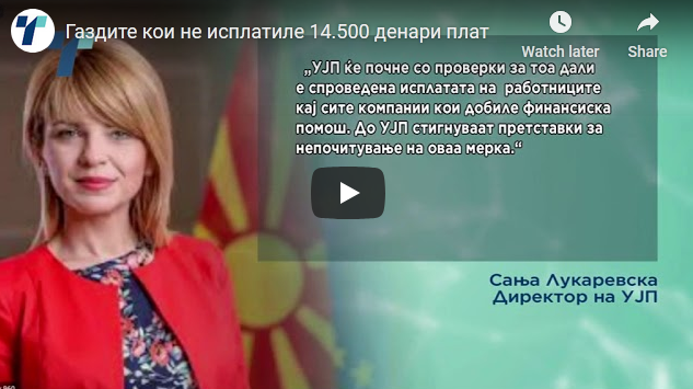 Газдите кои не исплатиле 14.500 денари плата на работниците ќе ги враќаат парите на државата 6Jun 2020Add a comment СподелиTweetLike Loading...