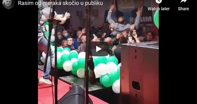 Српскиот министер за трговија, туризам и телекомуникации, инаку основач на Демократската партија на Санџак, Расим Љајиќ за време на предизборен митинг, верувале или не, како вистинска рок ѕвезда скокна од бината меѓу народот, по што луѓето го фрлаа во воздух.