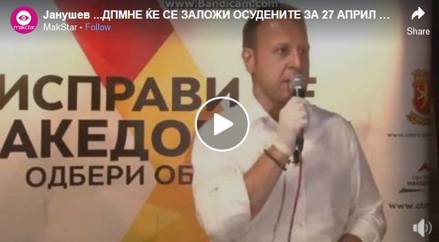 Јанушев …ДПМНЕ ЌЕ СЕ ЗАЛОЖИ ОСУДЕНИТЕ ЗА 27 АПРИЛ ДА ГО ВИДАТ СВЕТЛОТО НА ДЕНОТ 2Jul 2020Add a comment СподелиTweetLike Loading...