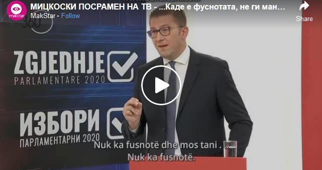 МИЦКОСКИ ПОСРАМЕН НА ТВ – …Каде е фуснотата, не ги манипулирајте граѓаните, г-не Мицкоски! 5Jul 2020Add a comment СподелиTweetLike Loading...