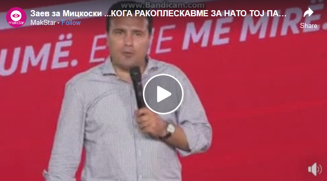 Заев за Мицкоски …КОГА РАКОПЛЕСКАВМЕ ЗА НАТО ТОЈ ПАНТАЛОНИТЕ СИ ГИ МЕСТЕШЕ… ДА НЕ ВЕ ЧУДИ АКО ИЗВАДАТ СПОТ ДЕКА ЌЕ НЕ ВНЕСУВААТ ВО НАТО… 6Jul 2020Add a comment СподелиTweetLike Loading...