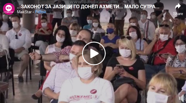 Заев од Чаир …ЗАКОНОТ ЗА ЈАЗИЦИ ГО ДОНЕЛ АХМЕТИ… МАЛО СУТРА… КАКО МАЧЕНЦЕ МОЛЧЕШЕ ПОКРАЈ ГРУЕВСКИ… 6Jul 2020Add a comment Заев од Чаир …ЗАКОНОТ ЗА ЈАЗИЦИ ГО ДОНЕЛ АХМЕТИ… МАЛО СУТРА… КАКО МАЧЕНЦЕ МОЛЧЕШЕ ПОКРАЈ ГРУЕВСКИ… СподелиTweetLike Loading...
