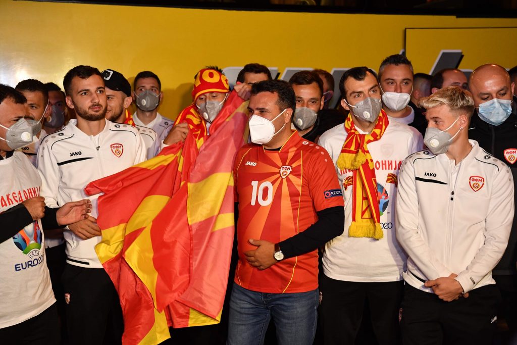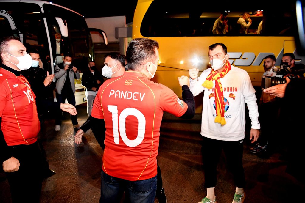 Доцна во ноќта фудбалерите на репрезентацијата на Македонија се вратија во државата од Грузија, каде во Тбилиси ја совладаа тамошната репрезентација и се пласираа на ЕП 2021 година. Тие беа пречекани од премиерот Зоран Заев и од вицепремиерот Артан Груби.