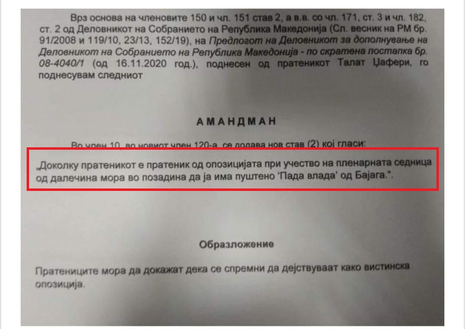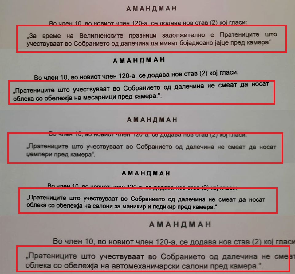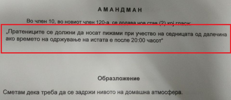 Ова е еден од илјадниците амандмани кои ги поднеле пратеници од опозициската Левица на предлог измените и дополнувањата на Деловникот за работа на Собранието.
