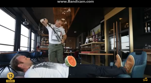 „Би ти ставил јаболко на главата, ти би лежел на стомак и би го пресекол точно“, му рече Стојанче на Жаре. Но, Жаре се согласи, да се обидат со сечење на лубеница. Епилогот од оваа игра погледнете го во видеото.