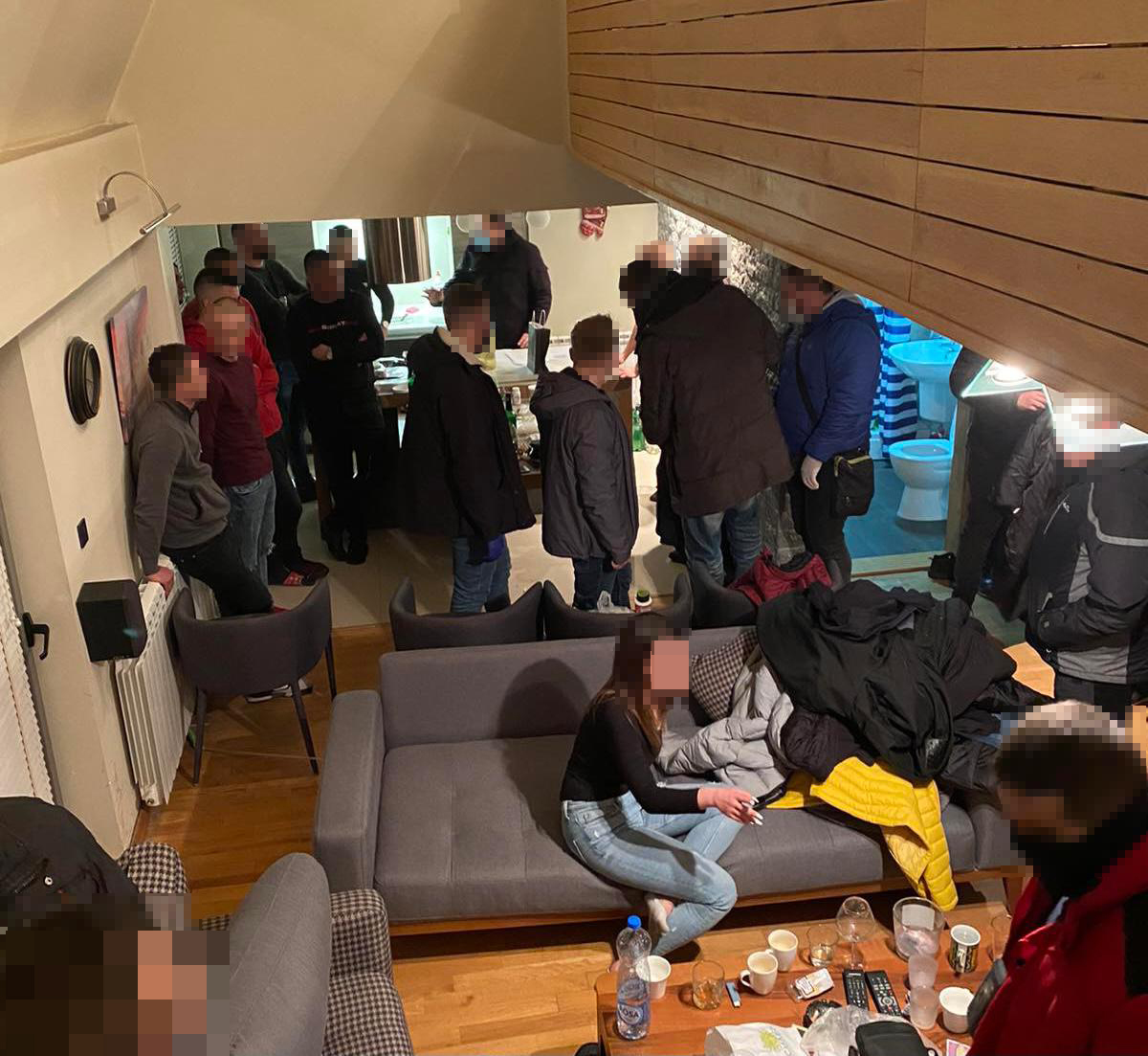 При претресот се затекнати 13 лица кои присуствувале на роденденска забава, а пронајдени се повеќе пакувања со кокаин, марихуана, екстази, амфетамин, хашишово масло и друга дрога. Приведени се М.К. (22), В.А. (28), М.И. (28), С.Г. (23), Р.Ј. (22), Р.В. (31), Г.А. (23), Н.К. (22), П.Г. (27), М.И. (21), Н.Ш. (23), Т.П. (22) и В.М. (23). Дел од лицата биле и затекнати додека консумирале наркотични средства. Против лицата ќе биде поднесени соодветни пријави до надлежното обвинителство.