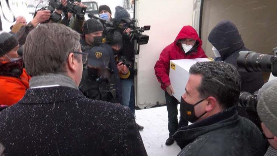 Македонија конечно ги доби првите анти-КОВИД вакцини. Снежното невреме не беше пречка комбето со 4680 вакцини на „Фајзер“ кои ги донира Србија да пристигне претпладнево на „Табановце“.