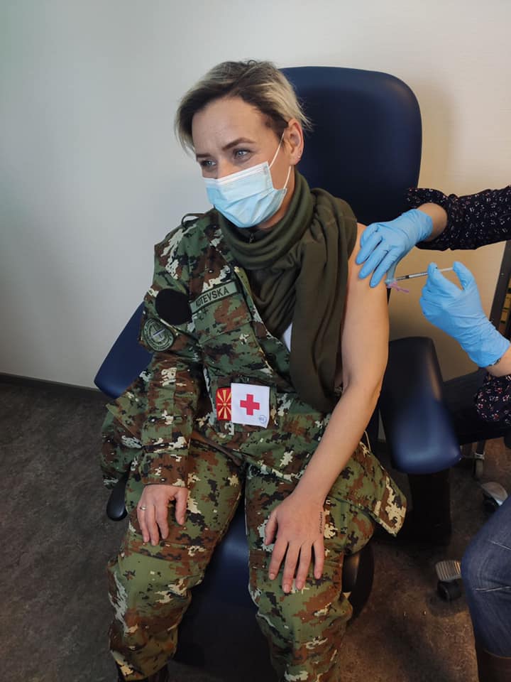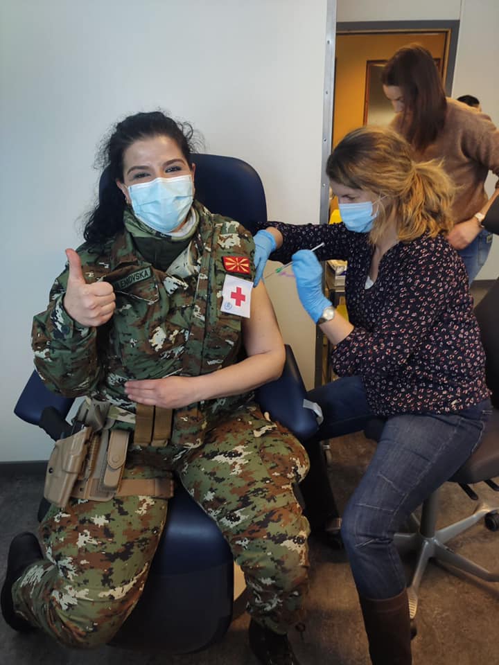 Шеќеринска “Нашиот воено-медицински тим кој е на подготовки во Норвешка пред заминувањето во Авганистан, денес ја прими првата доза вакцина против Ковид- 19. Вакцина прими и медицинската единица од норвешката армија со кои ќе бидат заедно во мировната НАТО операција “Одлучна поддршка””.