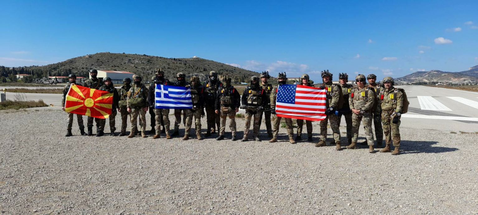 Припадници на специјалните сили од армиите на САД, Северна Македонија и Грција одржуваат трилатерална вежба чија цел е потврда на обученоста во изведување падобрански скокови и интероперабилноста во заеднички операции како одлика на НАТО – сојузниците.
