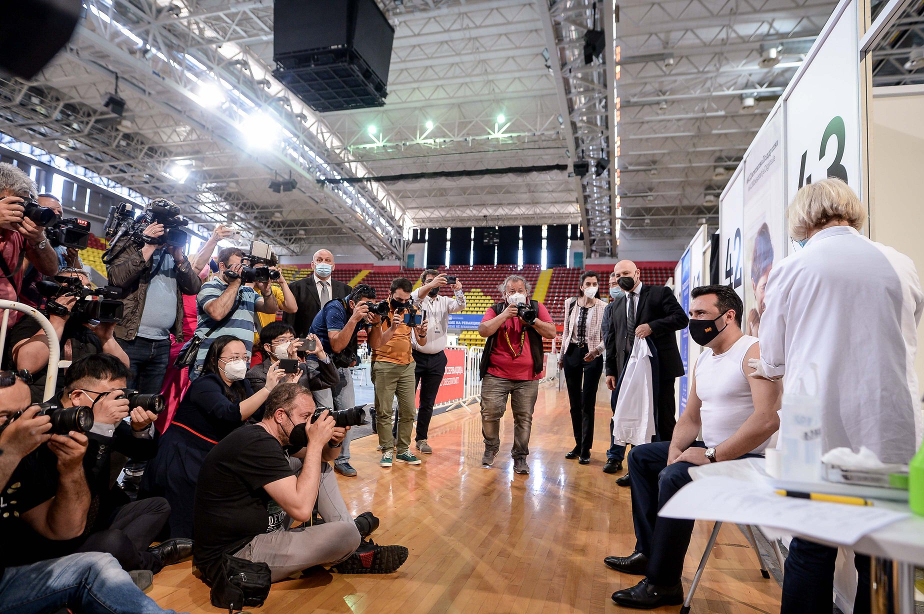 Премиерот Зоран Заев денеска на вакциналниот пункт во спортската сала „Борис Трајковски“ се вакцинираше против коронавирусот со вакцина од кинескиот производител „Синофарм“.