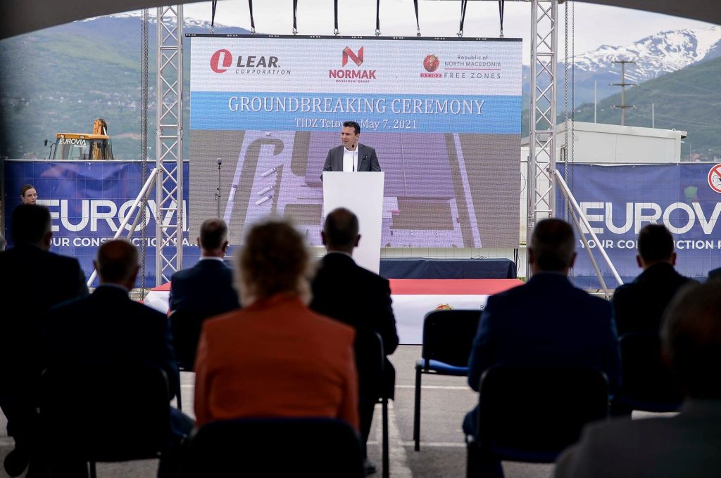 Нови 1.000 до 1.200 работни места во полошкиот регион најави премиерот Зоран Заев за време на поставувањето камен темелникот на новата заедничка инвестиција на американската компанијата „ЛЕАР“ и „Нормак Инвестмент Груп“, во Технолошко индустриската развојна зона во Тетово.