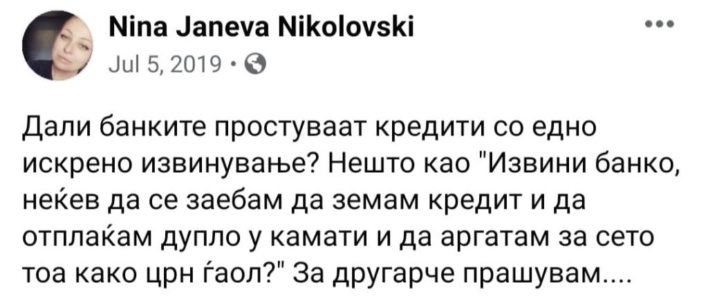 „1000 химни имам испеано, за првпат згрешив. Два дена плачам од разочараност од себеси. Не знам што да кажам, оправдан е револтот од народот, но добивам огромна поддршка од целата дијаспора“, вели пејачката за Женски Магазин.