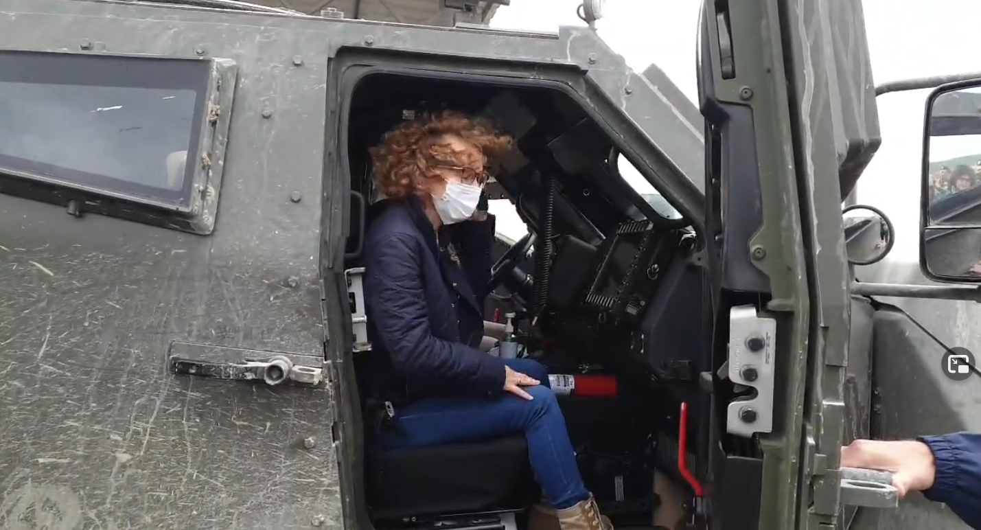 Министерката Радмила Шекеринска на пробно возење со новите армиски оклопни возила на “Криволак” набавени од САД