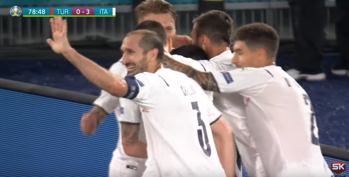 Репрезентацијата на Италија ја исполни целта, победи на отворањето на Европското првенство во пресметката со Турција со 0-3 (0-0). Дуелот на „Олимпико“ во Рим во целост им припадна на номиналнo гостите, бидејќи избраниците на Роберто Манчини го надиграа ривалот во секој сегмент од играта. Ако во првиот дел немаа среќа, таа ги погледна во продолжението и со автогол на Демирал и голови на Имобиле и Инсиње, Италија освои први бодови.