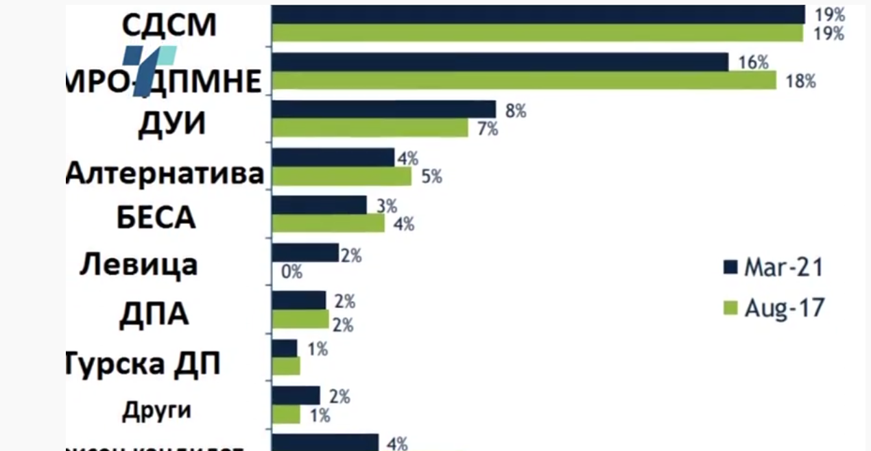 Доколку денеска се одржат локални избори, граѓаните повеќе преферираат кандидати на СДСМ кои би освоиле 19% од гласовите, додека предложените кандидати од ВМРО-ДПМНЕ би имале поддршка од 16%. Трета партија, според рејтингот, би била ДУИ за чии кандидати би се одлучиле 8%, а зад неа се Алијанса за Албанците и Левица со поддршка од 4%. Вкупно 21% одговориле дека не знаат за кого би гласале, а 9% воопшто нема да гласаат.