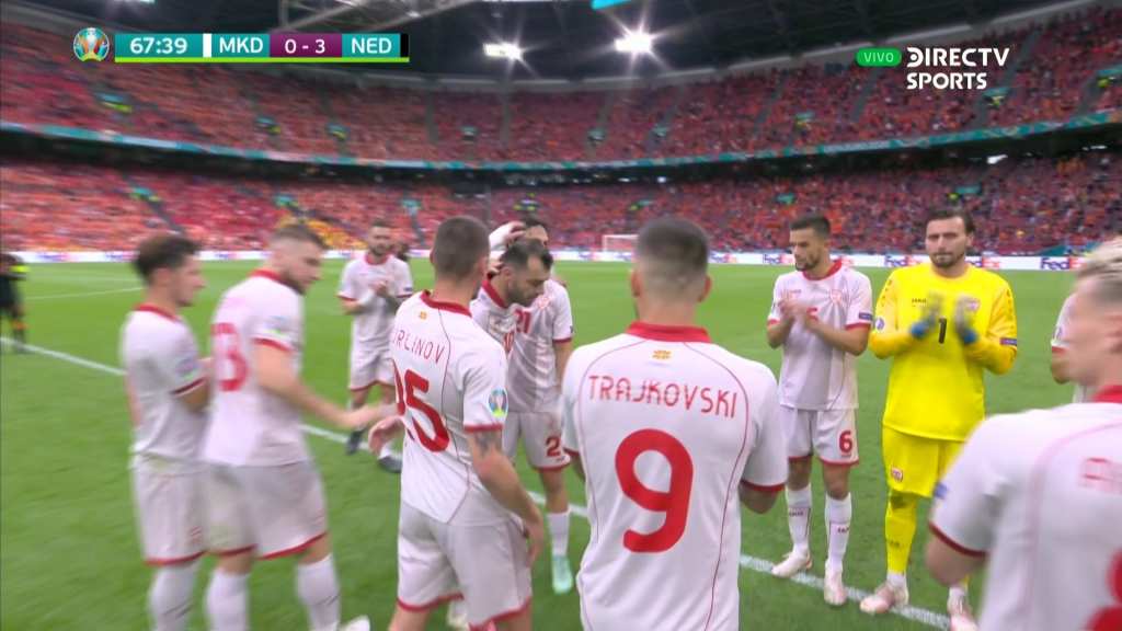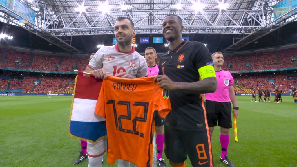 Горан Пандев имаше емотивно збогување со националниот дрес, откако селекторот Игор Ангеловски реши да го повлече од игра во 68. минута од мечот, предизвикувајќи аплаузи од сите навивачи на „Јохан Кројф арената“ во Амстердам.