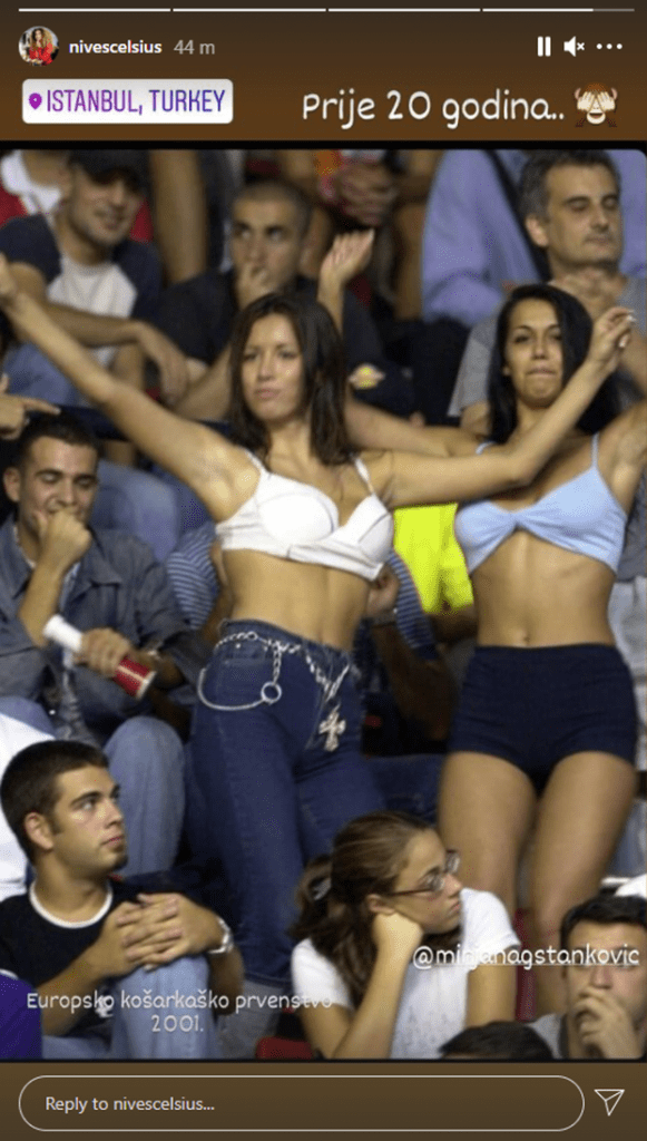 Заедно со фотографијата, таа напиша дека е фотографирана во Истанбул на Европското првенство во кошарка во 2001 година, а означи и пријателка со која внимателно ја следела играта.