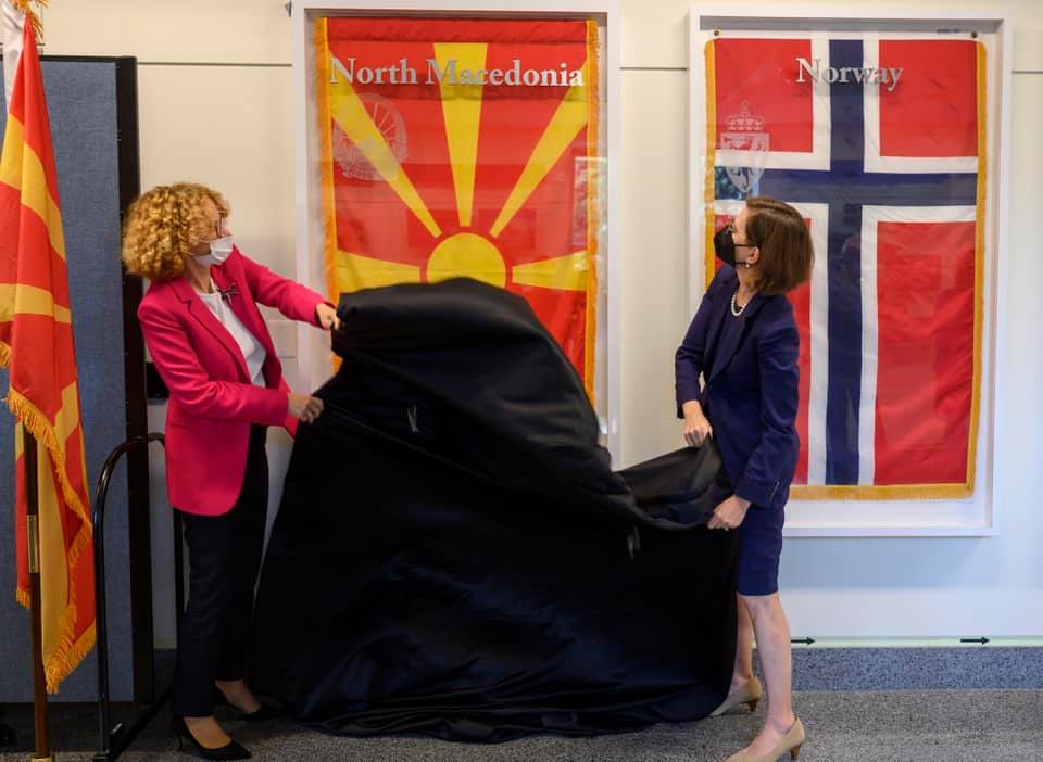 Знамето симболично го открија министерката Радмила Шекеринска и помошничката секретар за одбрана на САД, Лора Купер.
