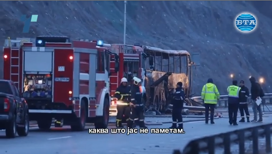 „Околу 3 часот по полноќ ми се јави дежурниот во општина Перник кој ми соопшти дека се случила ужасната несреќа која се случила на автопатот Струма, со многу жртви. Автобус со македински регистарски таблички претрпел тешка несреќа во која се запали, тука на ова место. Го гледате тука влажниот коловоз, со огромна нивелација и остриот свиок и човек ако не го знае тоа може да додје до трагедија, (како оваа) каква што јас не паметам“, изјави Станислав Владимиров, градоначалник на Перник .