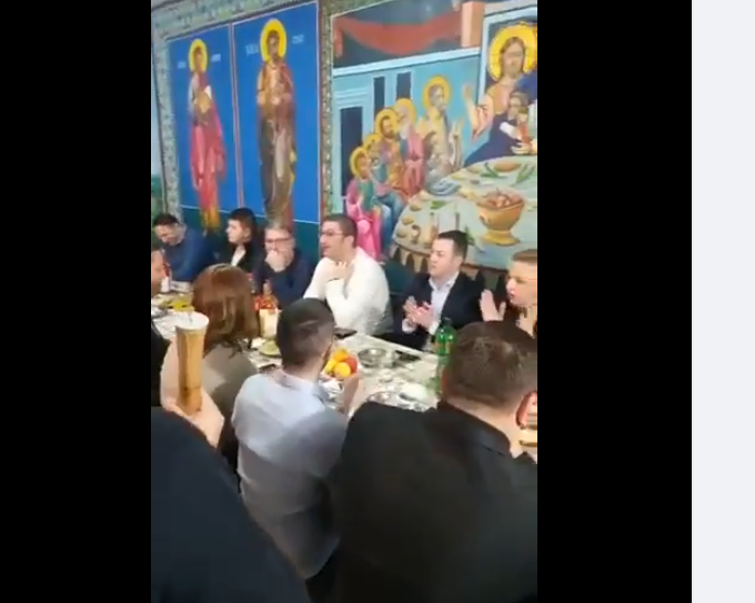 Од видеото објавено на социјалните мрежи, Христијан Мицкоски и дел од раководството на ВМРО ДПМНЕ се веселат во црква без држење на дистанца и почитување на мерките за заштита од ковид.