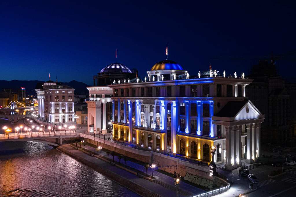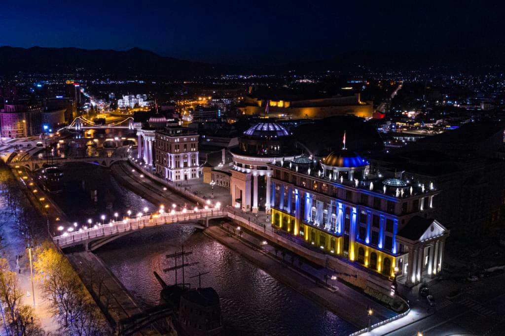 Министерството за надворешни работи вечерва е осветлено во боите на украинското знаме во знак на солидарност за воената инвазија која се случува таму од страна на Русија, информираше на својот Фејсбук профил шефот на дипломатијата, Бујар Османи.