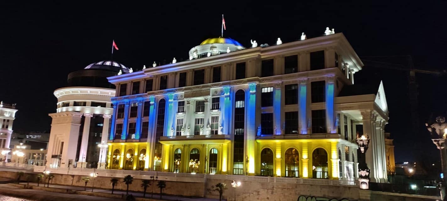Министерството за надворешни работи вечерва е осветлено во боите на украинското знаме во знак на солидарност за воената инвазија која се случува таму од страна на Русија, информираше на својот Фејсбук профил шефот на дипломатијата, Бујар Османи.