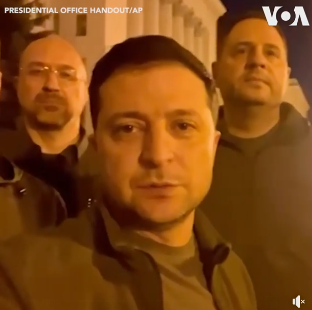 Украинскиот претседател Володимир Зеленски на социјалнитемрежи објави видео од улиците на Киев по гласините во руските медиуми дека побегнал од главниот град.