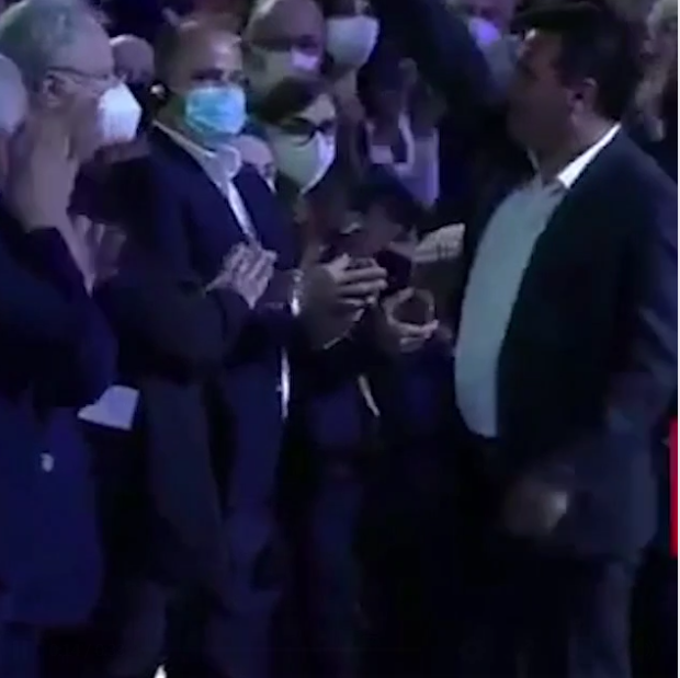 Тој доби посебна почит од лидерот на СИРИЗА, Ципрас, а од присутните во салата беше поздравен со овации и аплаузи.