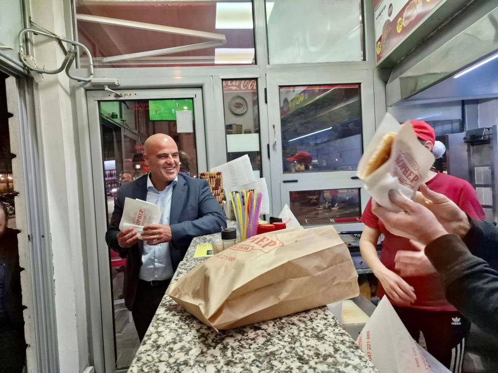 Премиерот на Македонија, Димитар Ковачевски по завршувањето на граѓанската трибина „Силно и одлучно кон иднината“ во Битола, си купи вечера од Широк сокак – тост.