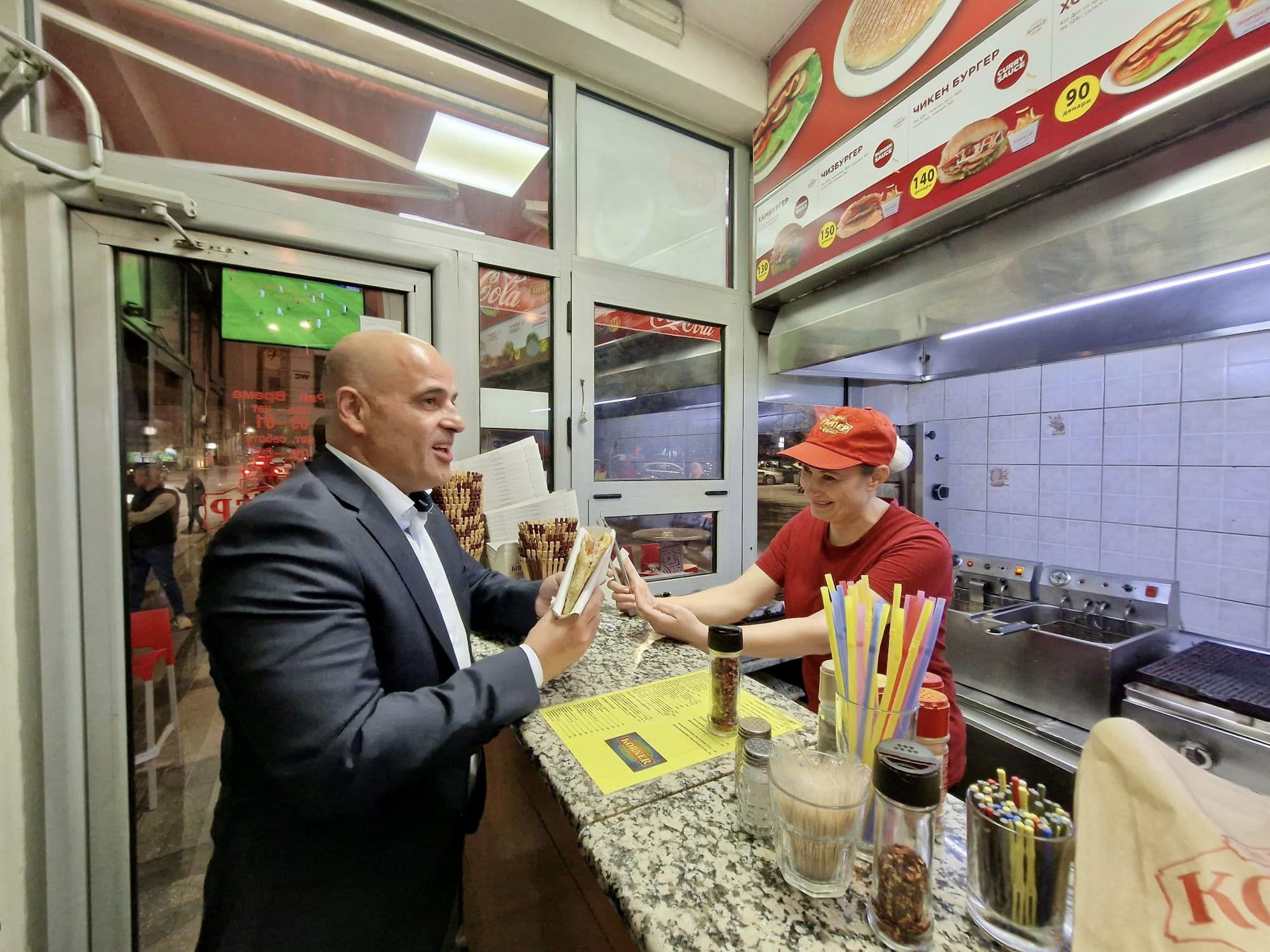 Премиерот на Македонија, Димитар Ковачевски по завршувањето на граѓанската трибина „Силно и одлучно кон иднината“ во Битола, си купи вечера од Широк сокак – тост.
