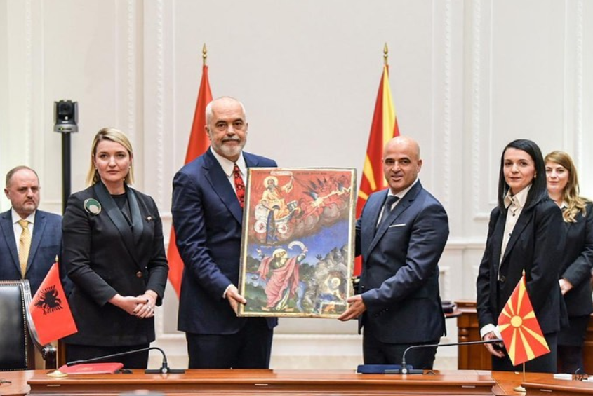 Една од нив, албанскиот премиер Еди Рама, на заедничката меѓувладина седница денес, симболично му ја врати на премиерот Димитар Ковачевски