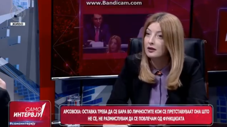 -Сум имала закани од Христијан Мицкоски и тоа конкретно, лично и директно со зборовите „доколку не го направиш ова, ќе ти се случи тоа и тоа“. „Во првиот момент кога ќе станам премиер ќе те влечеме по улици, ќе го бришеме подот со тебе“. Верувам дека не жена, ниту еден човек не треба да биде ставен под таков притисок. На оној што ги искажува овие закани не треба да му се дозволи ниту еден момент да биде во функција, во која што ќе може да ги исполни овие закани, посочи вечерва Арсовска во „Само интервју“ на Канал 5 телевизија.