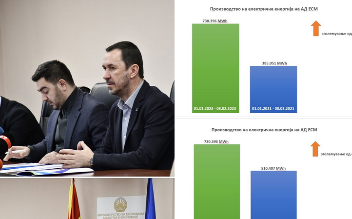 ,,Во периодот од 1 јануари до 8 февруари 2023г. АД ЕСМ преку капацитетите со кои располага произведе 720.369MWh електрична енергија, што е за 40% повеќе споредено со истиот период во 2022г, а дури 86% повеќе од истиот период во 2021г.Планот за производство за 2023г. заклучно со вчерашниот ден се исполнува 102,3%.