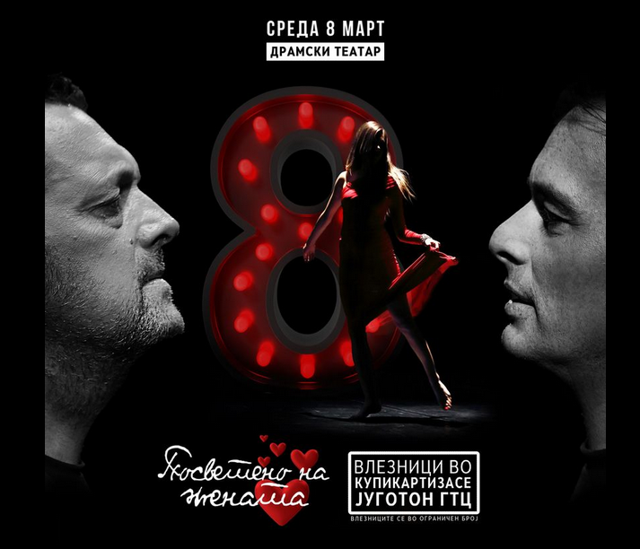 “Уште ми фалиш – посветено на жената” – специјална вечер на романтика и љубов. Тричасовна програма во два дела : концерт во сала и коктел музичка забава во фоајето на театарот (високи маси, кетеринг и пијалак), хумана мисија, специјални гости и подароци!