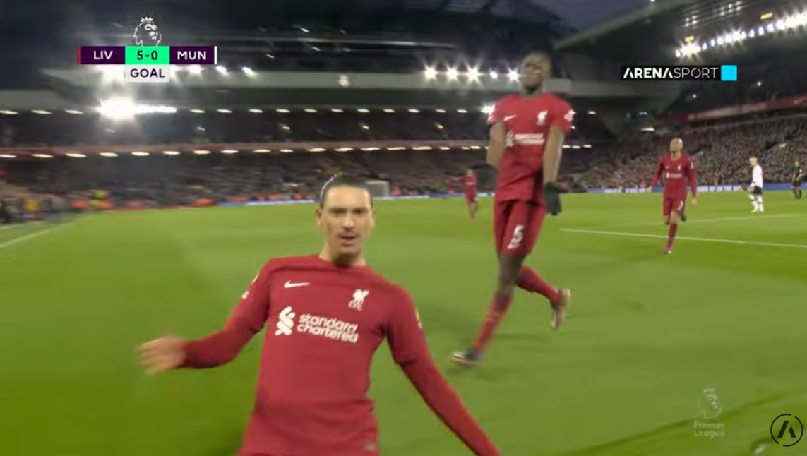 Средбата се одржа на „Енфилд“, а по два гола постигнаа Мохамед Салах, Дарвин Нуњез и Коди Гакпо, еднаш погоди Роберто Фирмино.