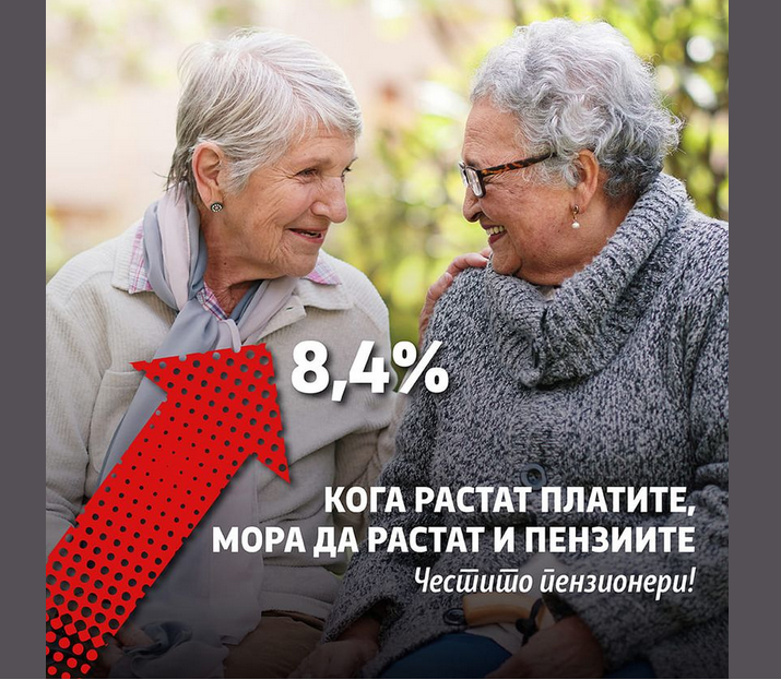 Министерството за труд и социјална политика известува дека согласно одлуката на Владата на Република Северна Македонија од март 2022 година за новата методологија за усогласување на пензиите со мартовската исплата пензиите ќе се зголемат за 8,4%.